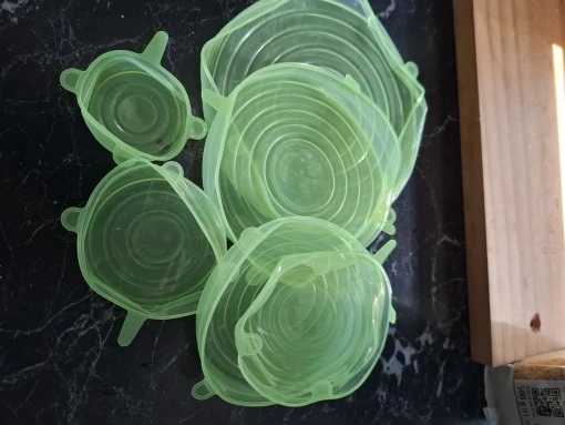 Mantenga sus alimentos y bebidas frescos con este set de 6 cubiertas de silicona. Diseñadas para ser reutilizables y universales, se adaptan a recipientes redondos y cuadrados, ofreciendo un sellado hermético. Su versatilidad las hace ideales para múltiples usos en cocina y almacenamiento.